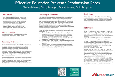 • Effective Education Prevents Readmission Rates by Taylor Johnson, Gabby Belanger, Ben Mittleman, and Bella Ferguson